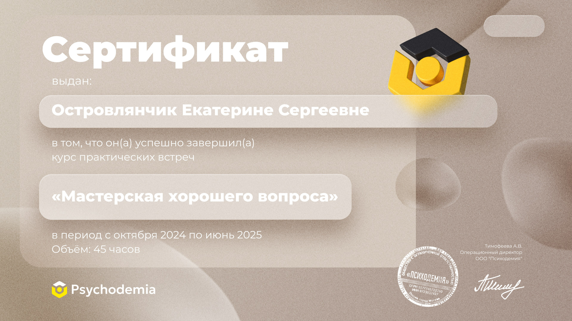 - мастерская хорошего вопроса Олеси Шаповал, 45+ ак. ч.