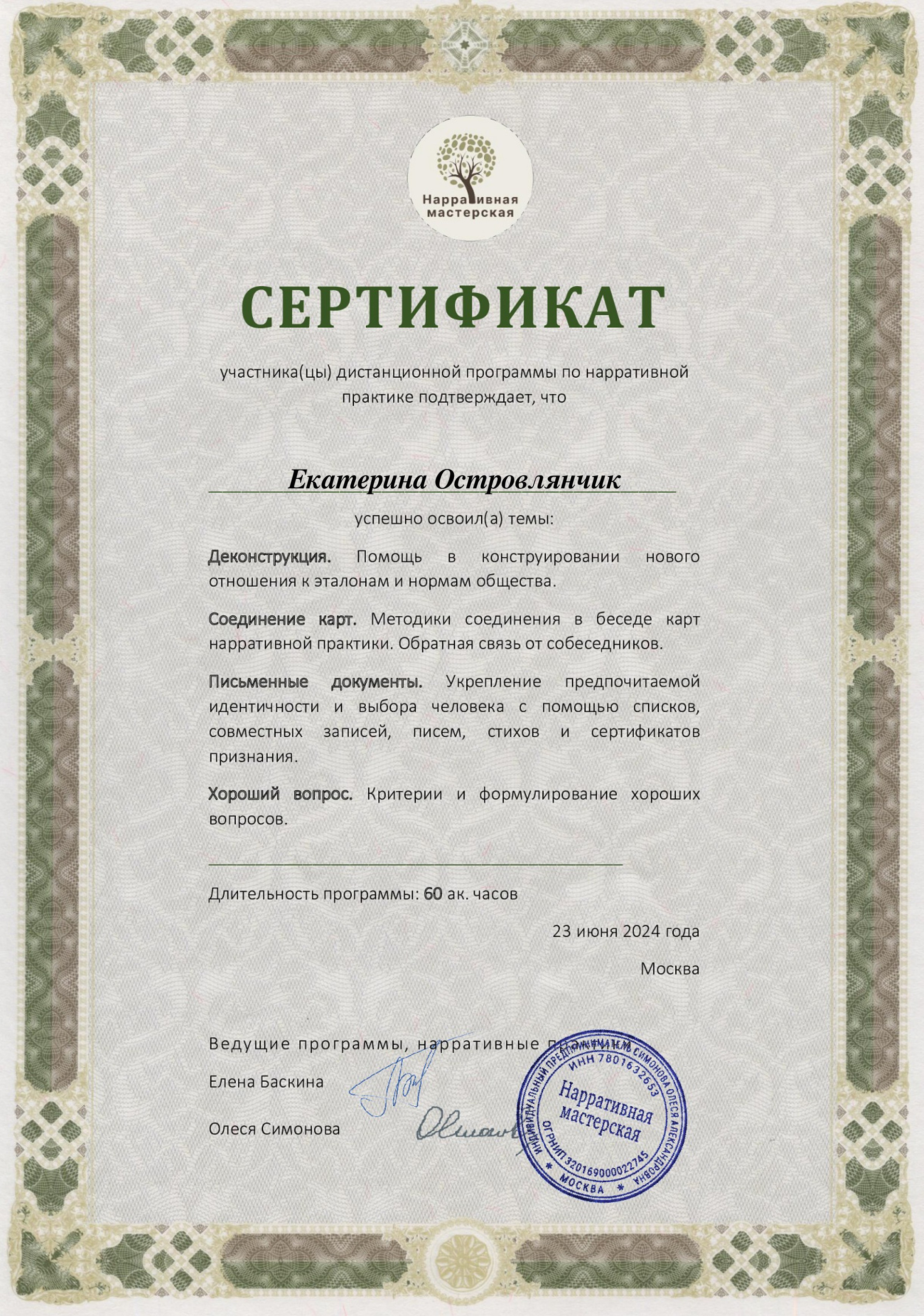 - первая, вторая, третья ступени Нарративной Мастерской Олеси Симоновой, 156 ак. ч.